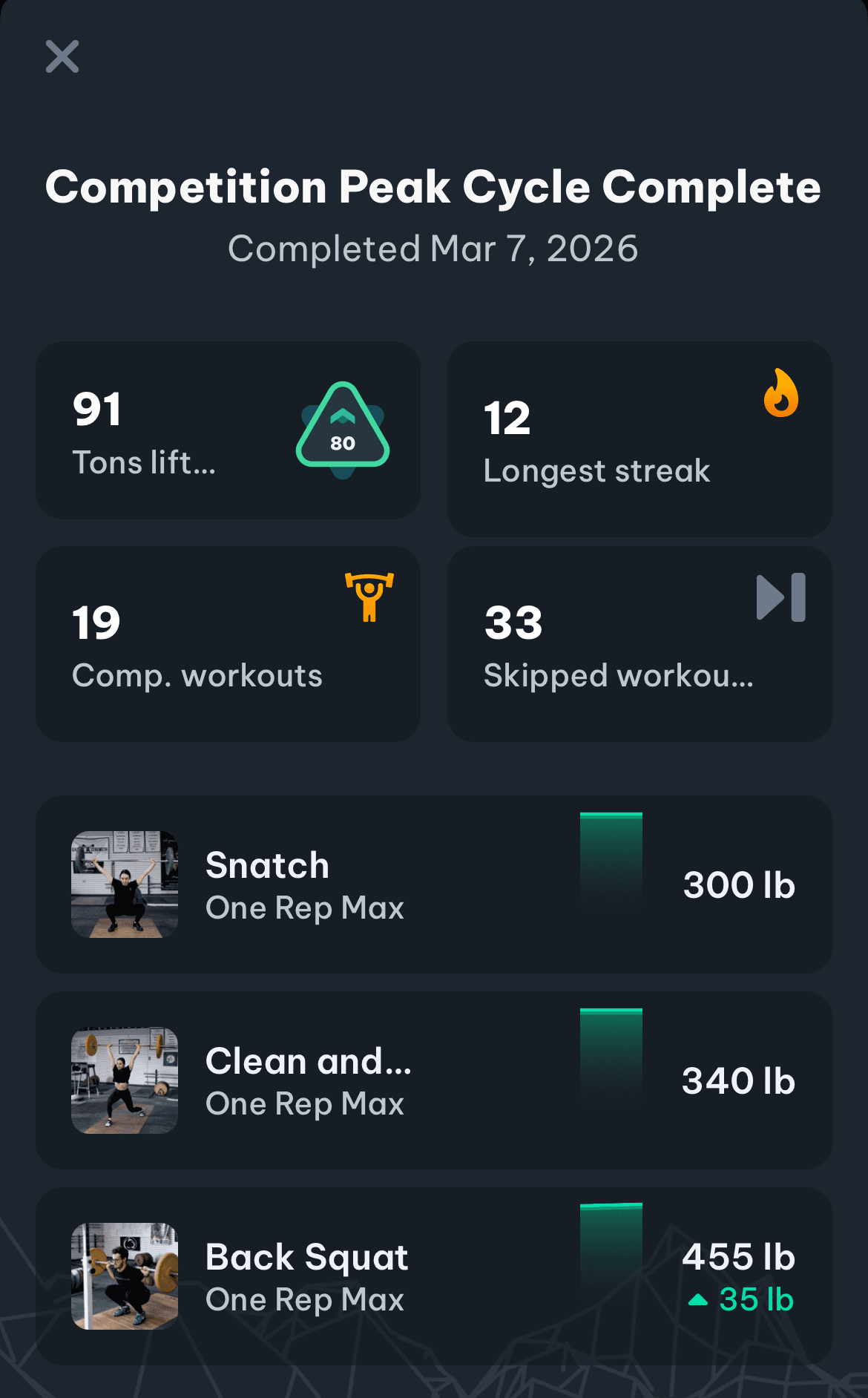 Remember to share your workout recap with us on Instagram by tagging @peakstrengthapp !